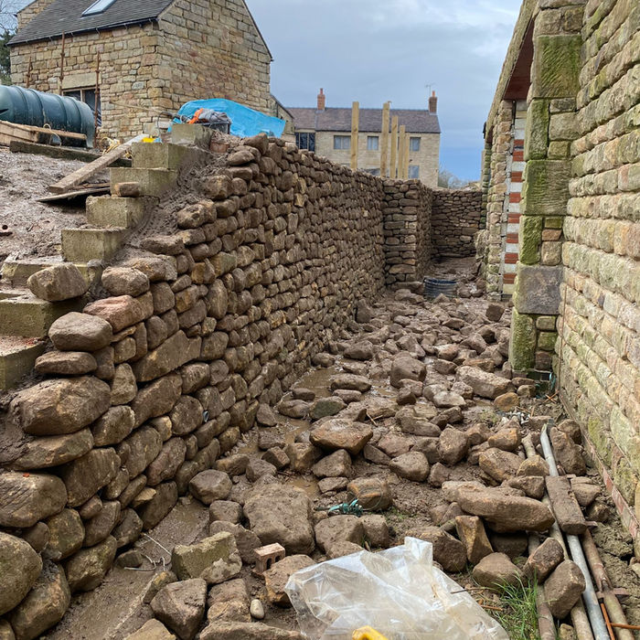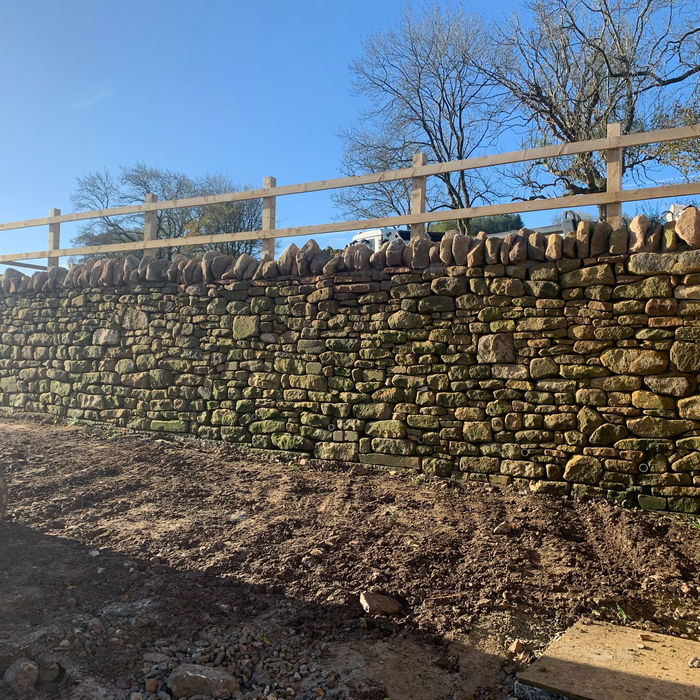 This expertly crafted dry stone cladding project showcases traditional techniques and high-quality craftsmanship, creating a strong, durable, and visually striking wall that seamlessly blends into its natural surroundings.